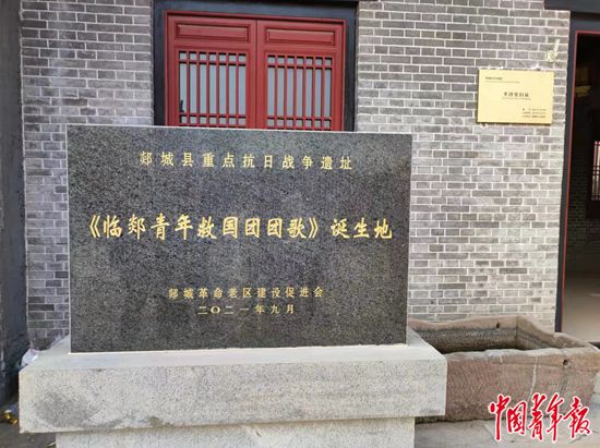 《临郯青年救国团团歌》诞生地纪念碑。中青报·中青网记者 杜沂蒙/摄