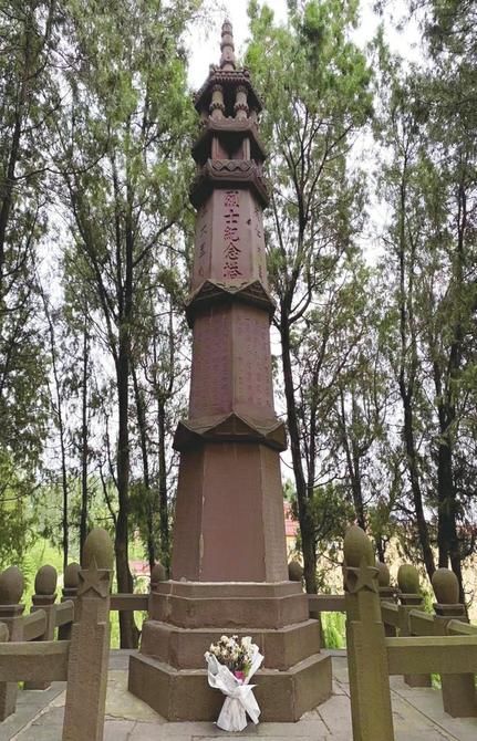 1941年12月,在山东省沭水县(今莒南县)渊子崖村,面对1000多名武装到牙齿的敌人的疯狂进攻,全村男女老少凭借简陋的土枪、土炮、砖头和棍棒奋起反抗,谱写了中国抗日战争史上农民自发组织的规模最大、最悲壮、最具民族不屈精神的浴血保卫战。1944年,为纪念在渊子崖保卫战中死难的烈士,沭水县政府在该村北面的山岭上立塔纪念。渊子崖烈士纪念塔,由当地特产的红色水成岩条石雕砌而成。塔底周长18米,塔身高9米,呈六角七级宝塔造型。纪念塔坐北向南,塔身共铭刻了242位烈士的名字,以及陈士榘、谢辉、高赞非和沭水县政府的题词。纪念塔第一层刻有《沐水县烈士塔纪略》。