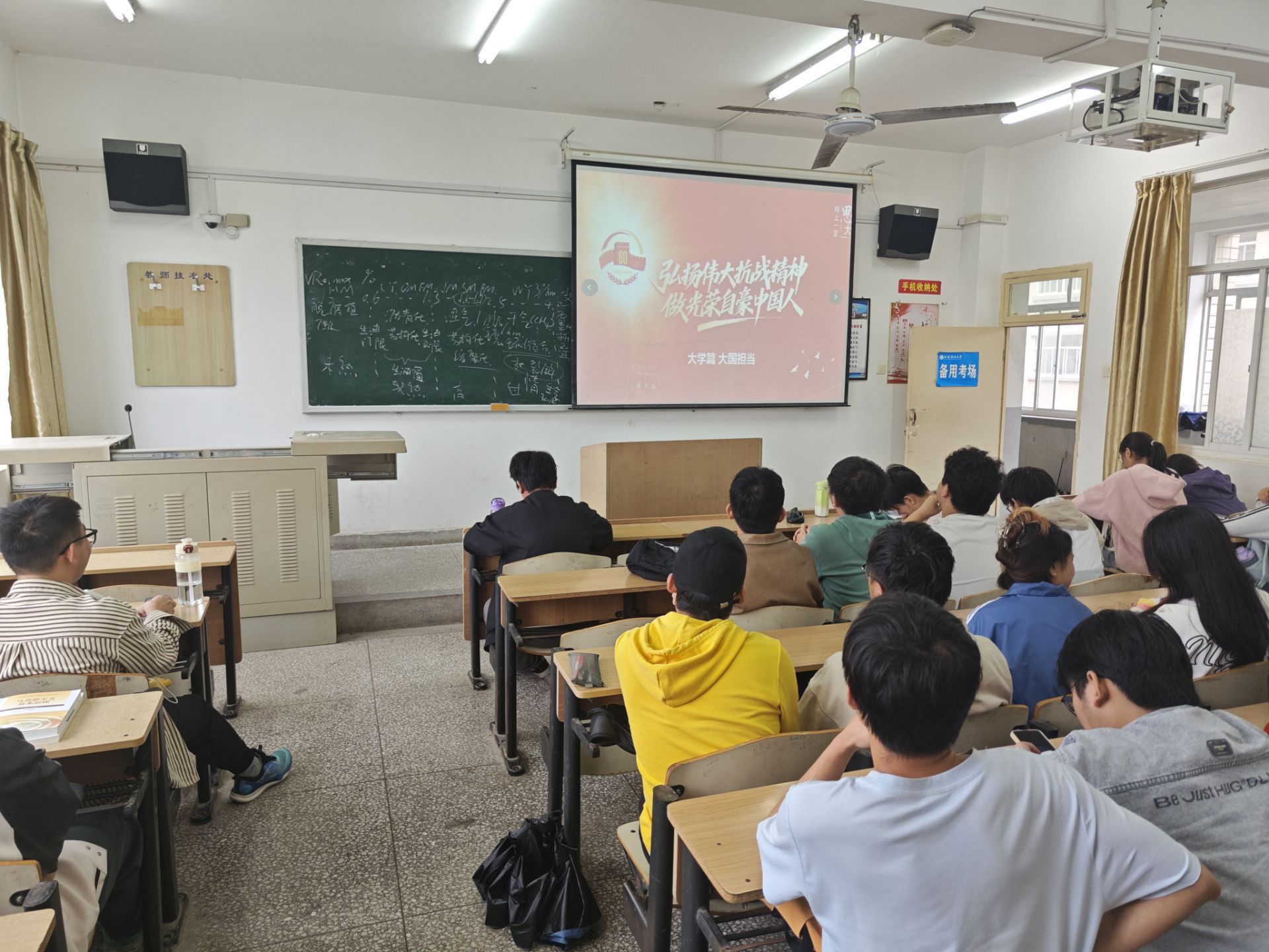 为纪念中国人民抗日战争暨世界反法西斯战争胜利80周年,引导青年学子传承红色基因,9月18日学院组织2023级全体本科生,分专业在教室集中收看全国大中小学生同上一堂“弘扬伟大抗战精神·做光荣自豪中国人——纪念中国人民抗日战争暨世界反法西斯战争胜利80周年”思政大课教育视频。