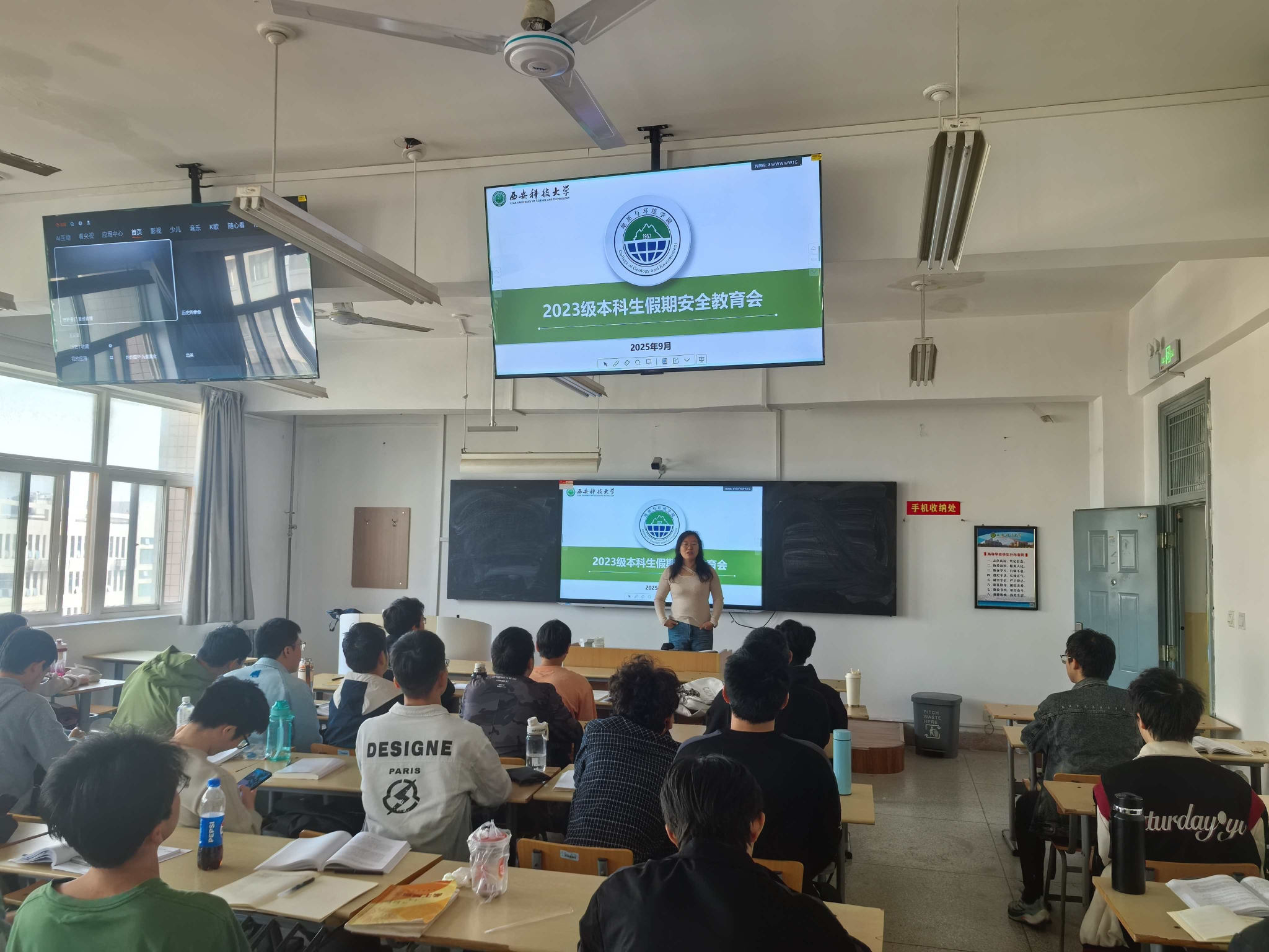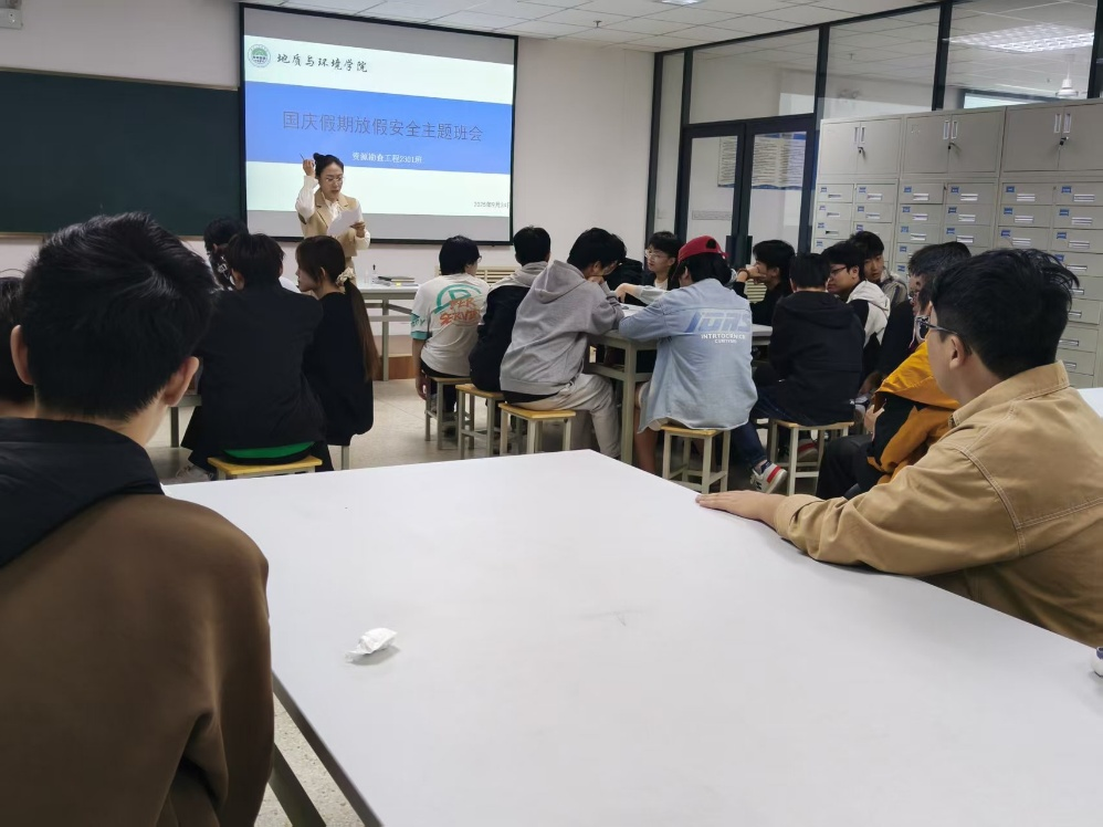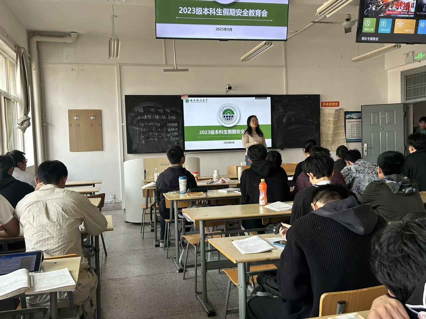 为切实保障学生国庆假期人身与财产安全,进一步规范假期学生管理工作,国庆前夕,学院组织2023 级本科生班主任与辅导员共同深入“一站式”学生社区、班级,召开国庆假期安全教育会,为全体学生送上“安全大礼包”。
