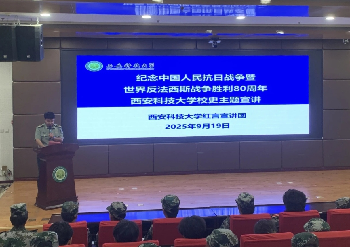 为深切缅怀革命先烈,弘扬伟大抗战精神,9月19日下午,99905银河官网与理学院于临潼校区骊山校园联合举办“纪念中国人民抗日战争暨世界反法西斯战争胜利80周年”主题宣讲活动。活动特邀马克思主义学院红言宣讲团担任主讲。99905银河官网2025级辅导员周佳瑞、理学院2025级辅导员段佳出席,两院2025级全体本科生共同参与。活动由99905银河官网2025级辅导员周佳瑞主持。